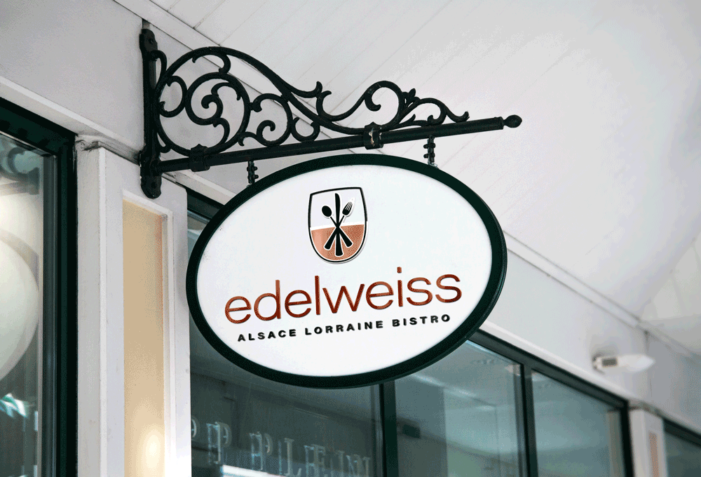 There was a great little restaurant near me that served a wonderful variety of German and French dishes. It was sold and became an Italian eatery, unfortunately. I say that not because the new place is crummy—it’s really good—but because Italian food is so prevalent around here. This place was an oasis in a sea of pasta. Anyway, the owner started guest-cheffing at another local restaurant, offering “German Nights”once a month. These were so well attended and successful that there was talk among the owners of changing the whole menu and business identity. It never happened, but here’s the proposed solution: Exterior signs, menus, gift cards, flag, table tents for specials, and smock patches.
